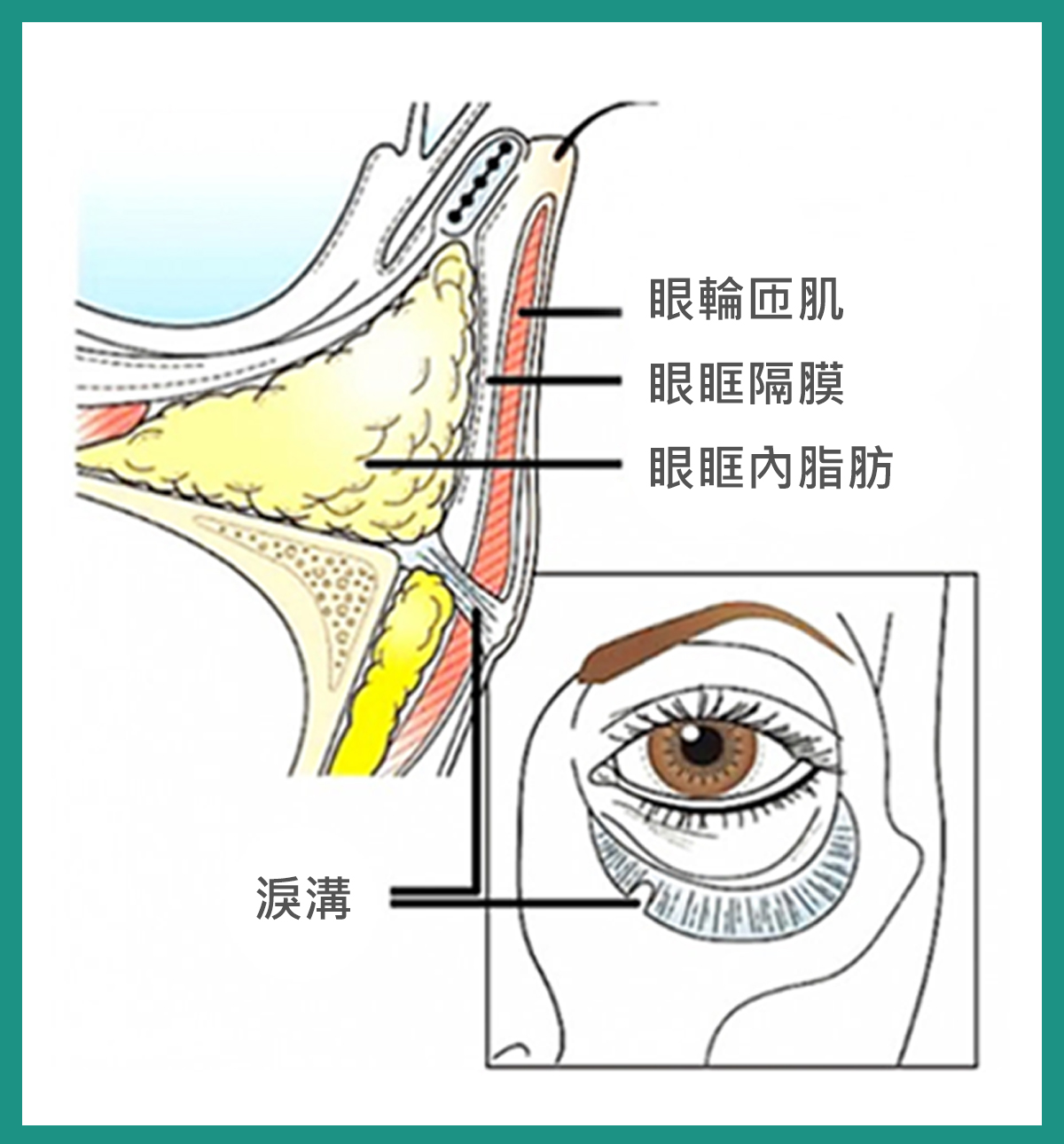 為了保護眼球,眼睛周圍本來就會有一些脂肪組織在骨骼之間當作眼球的保護層,一般來說,眼眶骨周圍的脂肪量能夠與下眼部的結締組織達成平衡狀態,讓臉部眼下區塊呈現飽滿無凹陷且視覺平坦的區塊。